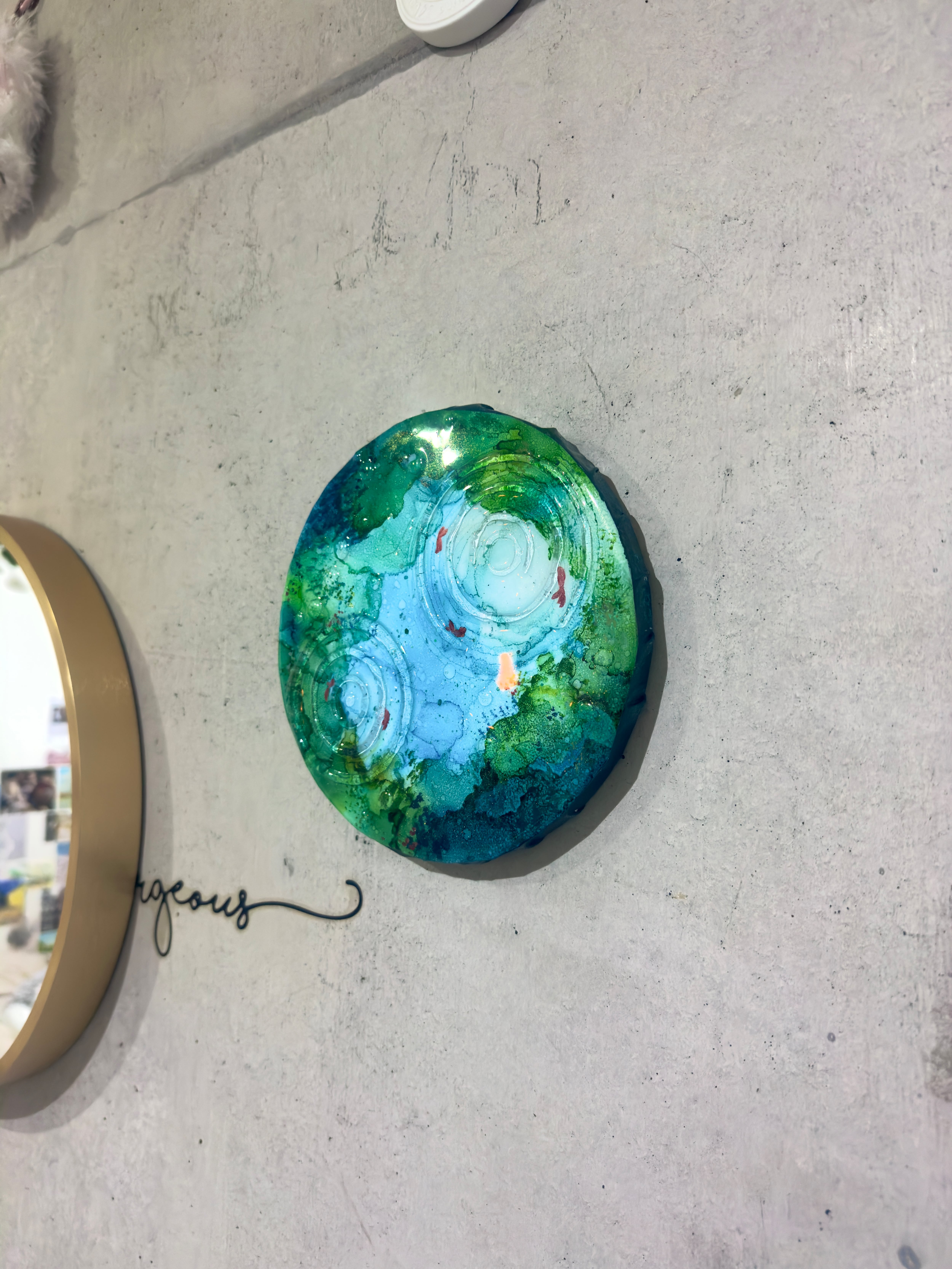 ・表面は一面レジン(樹脂)を使用しています。黄変しにくい高品質なものを選んでいますが、経年や環境によっては、わずかに色味が変化する可能性があります。