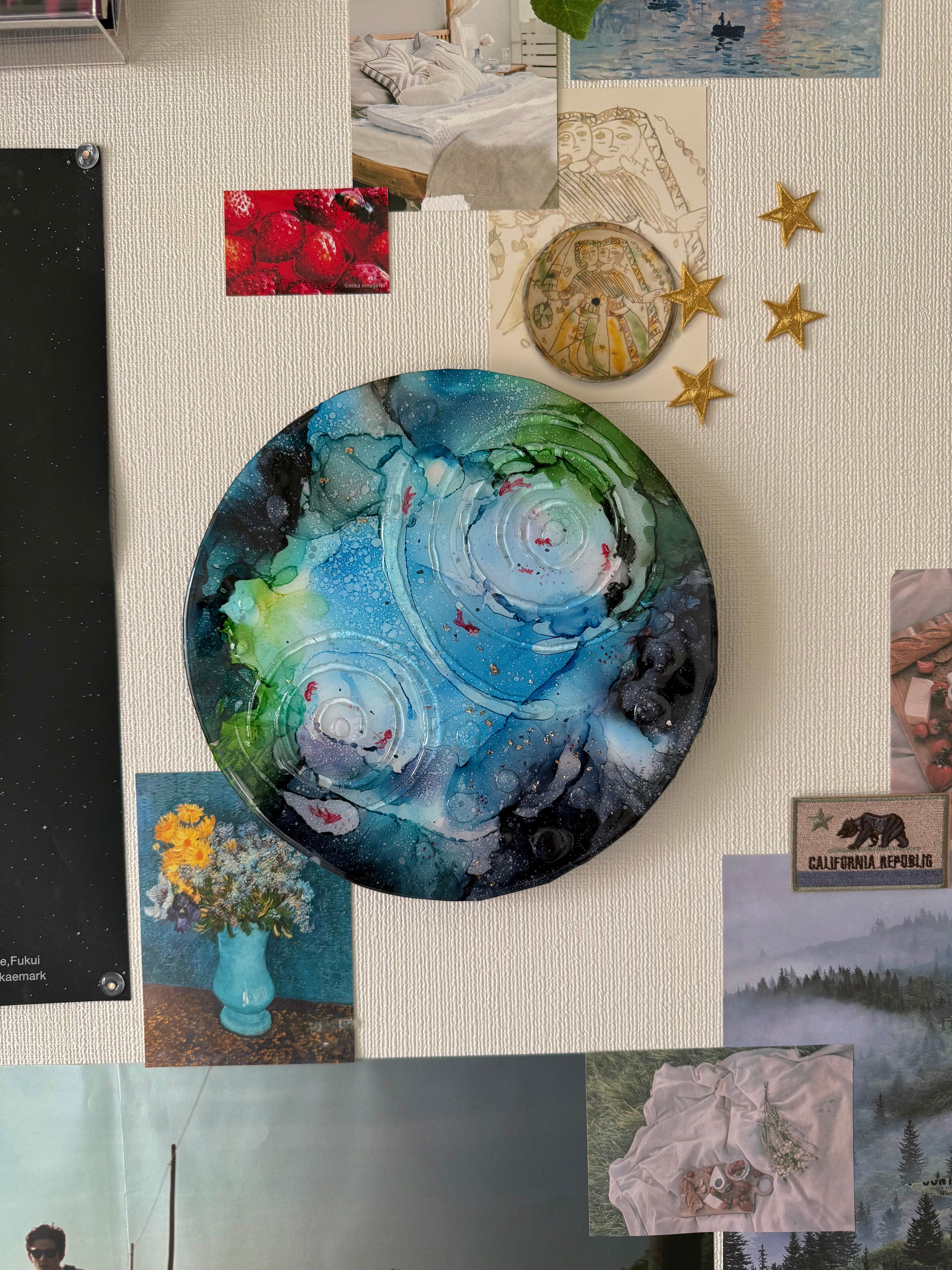 ・表面は一面レジン(樹脂)を使用しています。黄変しにくい高品質なものを選んでいますが、経年や環境によっては、わずかに色味が変化する可能性があります。